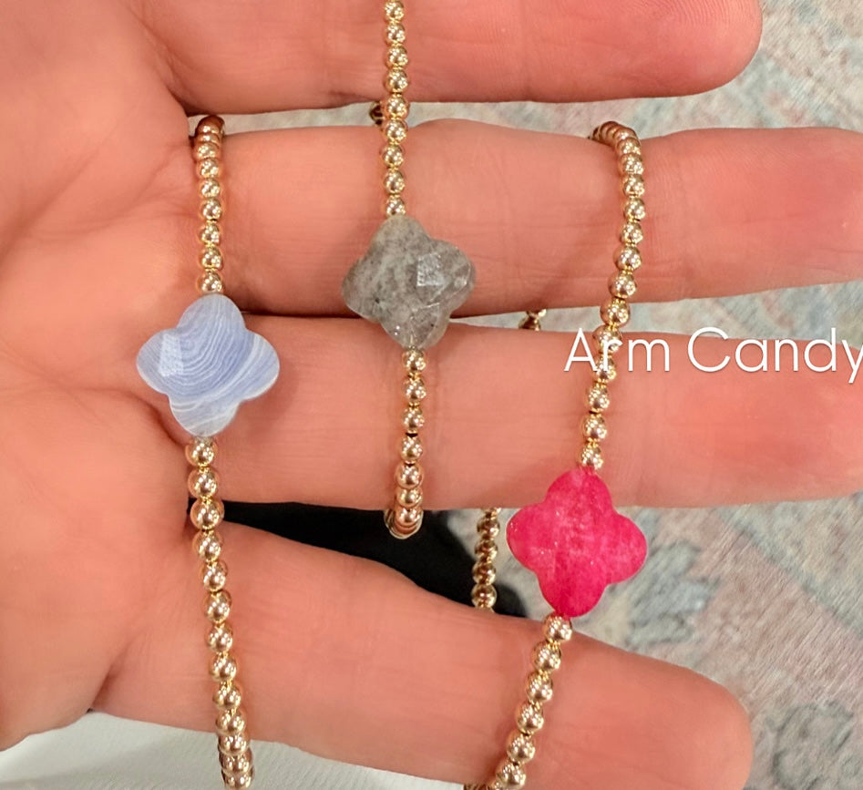 Blue quartz stone Clover and 3 mm Gold filled ballzzz.